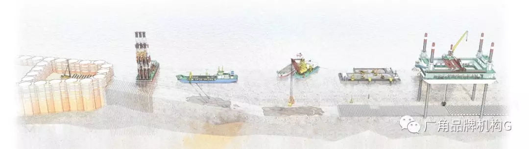 面對厚厚的一沓又一沓專業性極高的技術資料,廣角團隊認真研讀,提煉核心,最終確定了畫冊的版塊劃分與各章節內容,從以下四個層面來展示大橋島隧工程的情況: