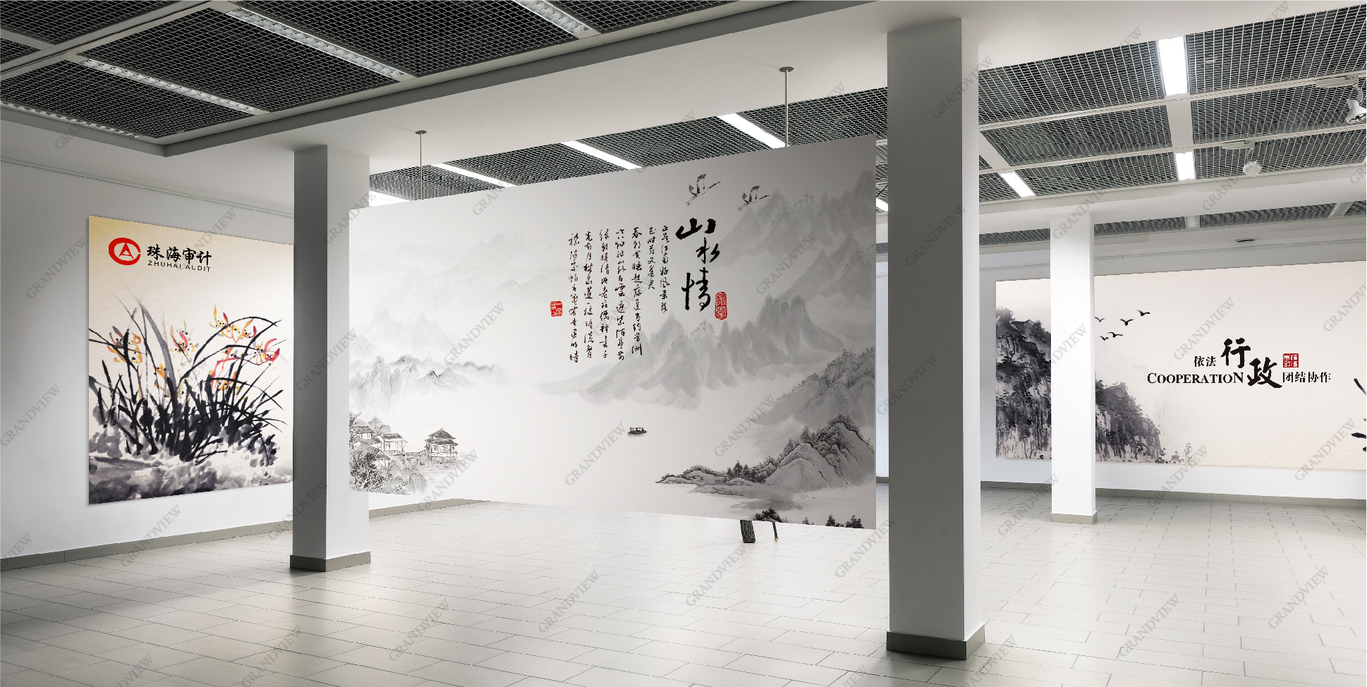 審計(jì)局平面海報(bào)水墨畫為設(shè)計(jì)靈感,立足于傳統(tǒng),傳承博大精深的中華文化,彰顯審計(jì)局穩(wěn)重、低調(diào)、大氣的形象,具有鮮明的民族特色。