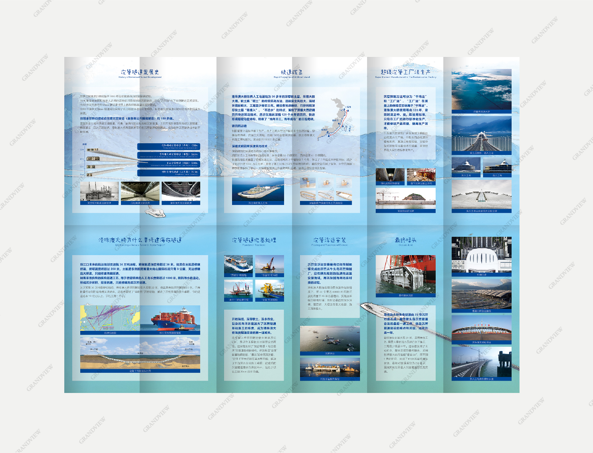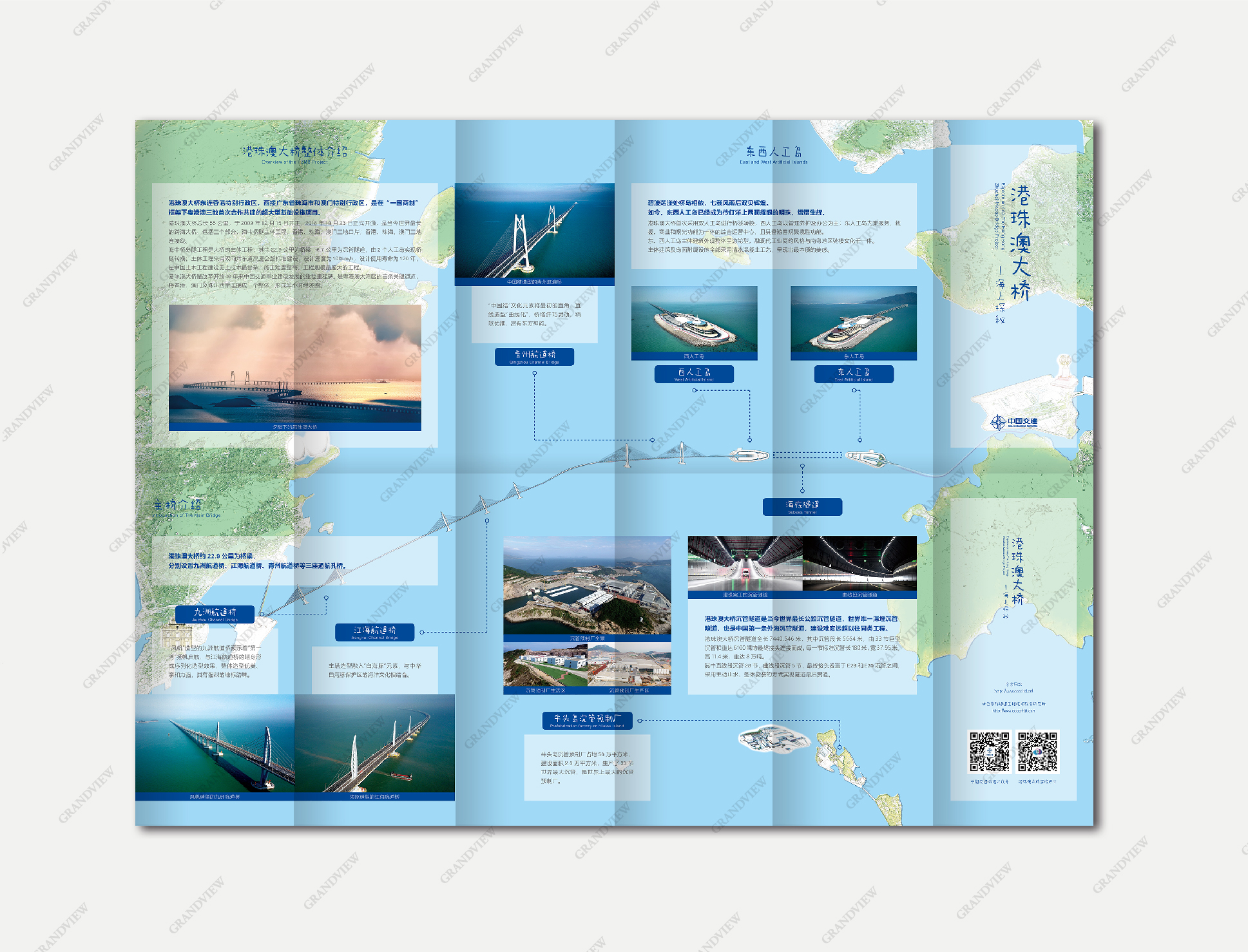 廣角受邀為港珠澳大橋設計以青少年群體為主的科普小折頁,以“港珠澳大橋—海上探秘”為主題,以簡潔優美的文字傳遞科技創新和世紀工程的偉大,以美輪美奐的圖片展示碧波蕩漾處長龍臥波,七載風雨后雙貝輝煌的絢麗景象。